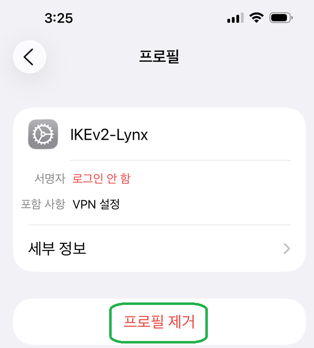 "¼³Á¤" -> "ÀϹÝ" -> "VPN ¹× ±â±â °ü¸®" ¸¦ ¿°í »èÁ¦ ÇÁ·ÎÆÄÀÏ("IKEv2-Lynx") ¸¦ ¼±Åà ÈÄ¿¡ "ÇÁ·ÎÇÊ Á¦°Å"